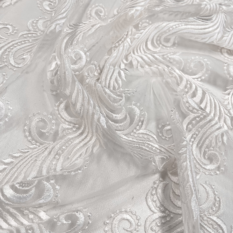 This beautiful embroidered bridal lace is perfect for a wide range of textile applications including fashion, millinery, costumes and dresses.