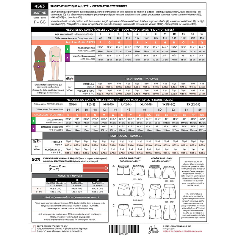 Create your own version of high-performance athletic shorts with the Justine pattern. A sleek, flattering fit at a fraction of the price of high-end activewear brands.