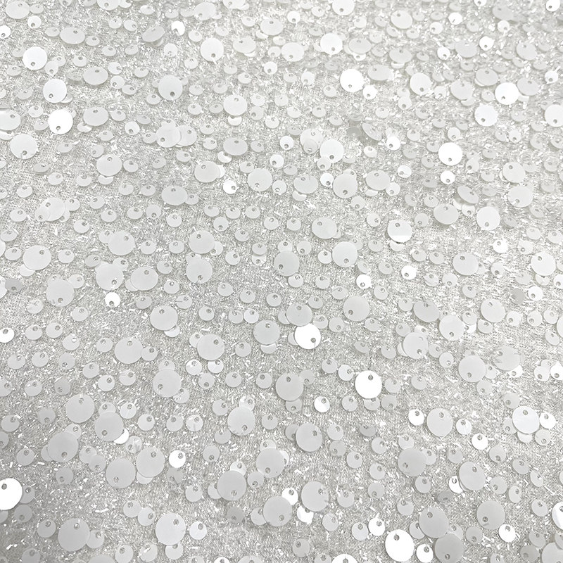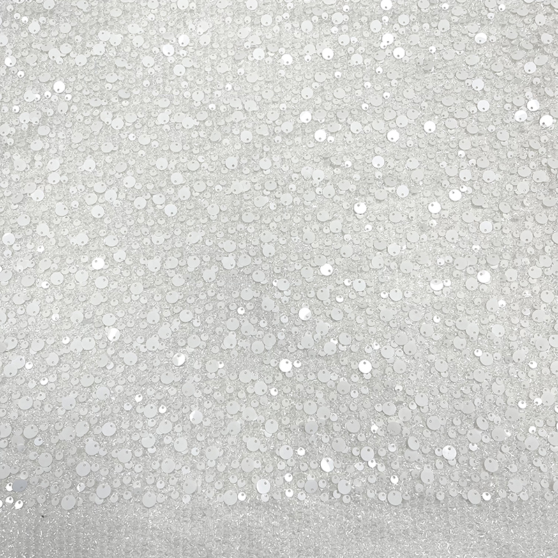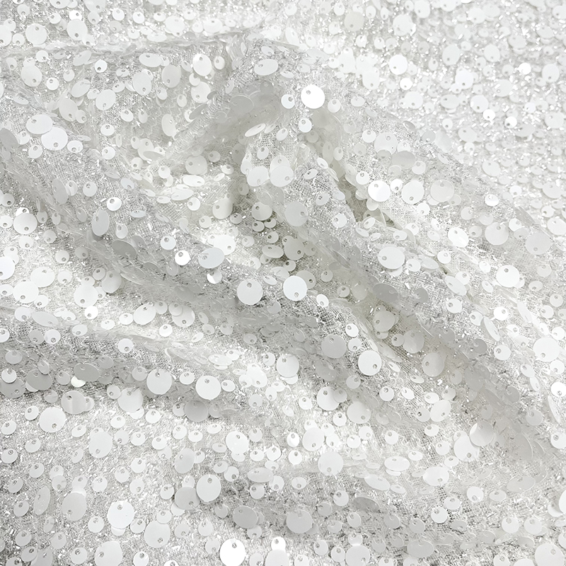 All over sequin fabric with tinsel tulle base. Perfect for bridal and occasion wear